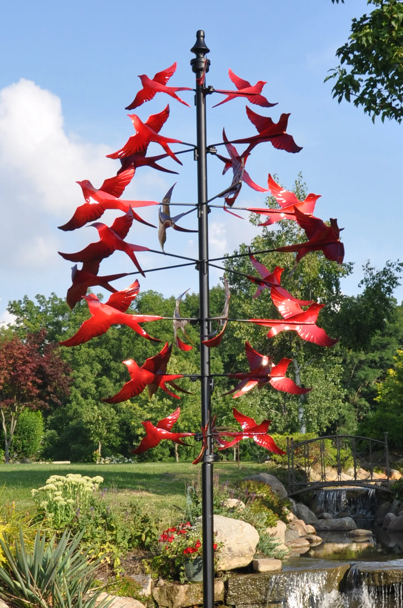 As the wind spins this metal art, you can show off your creativity and create a beautiful display in your yard.