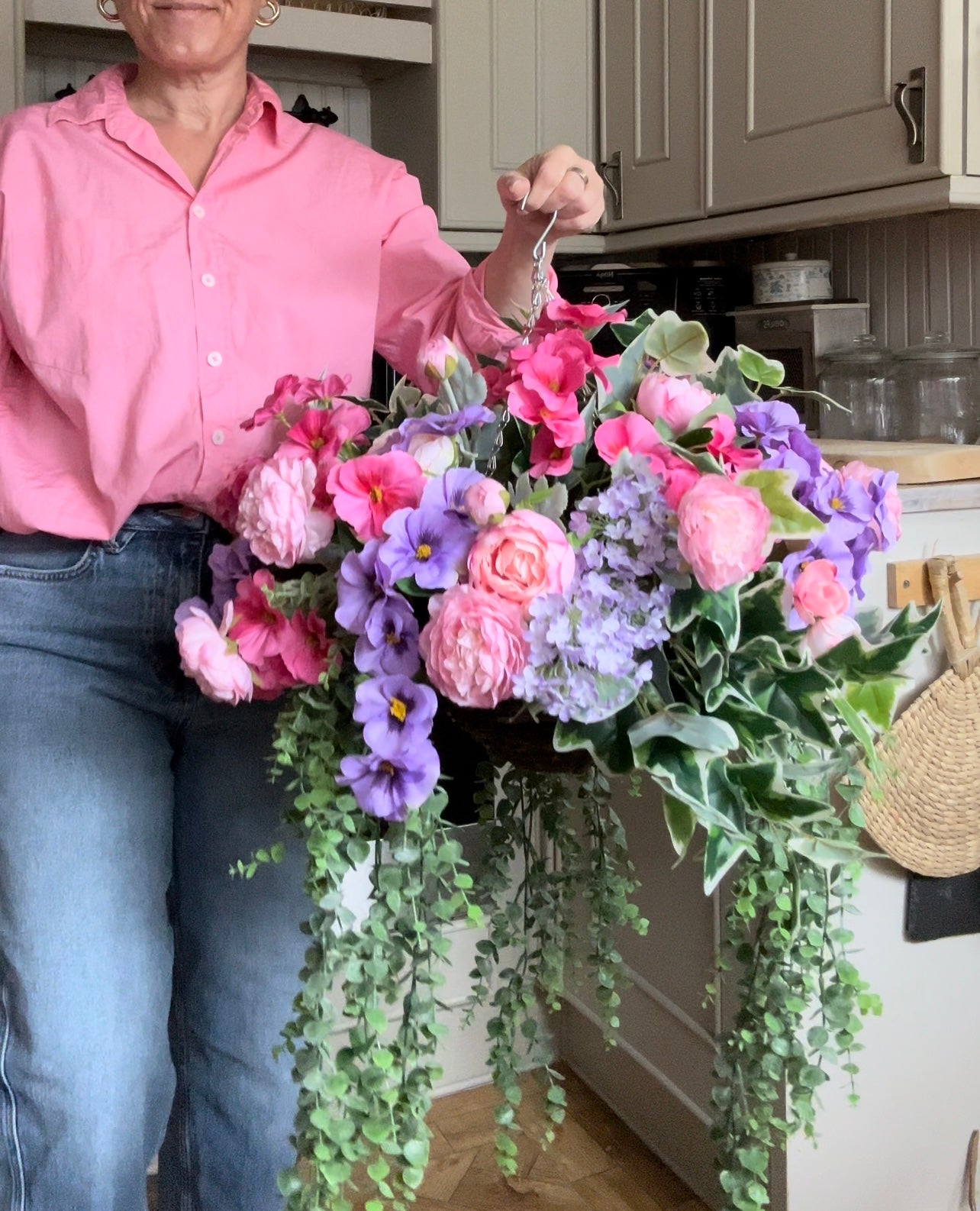 Artificial hanging basket
