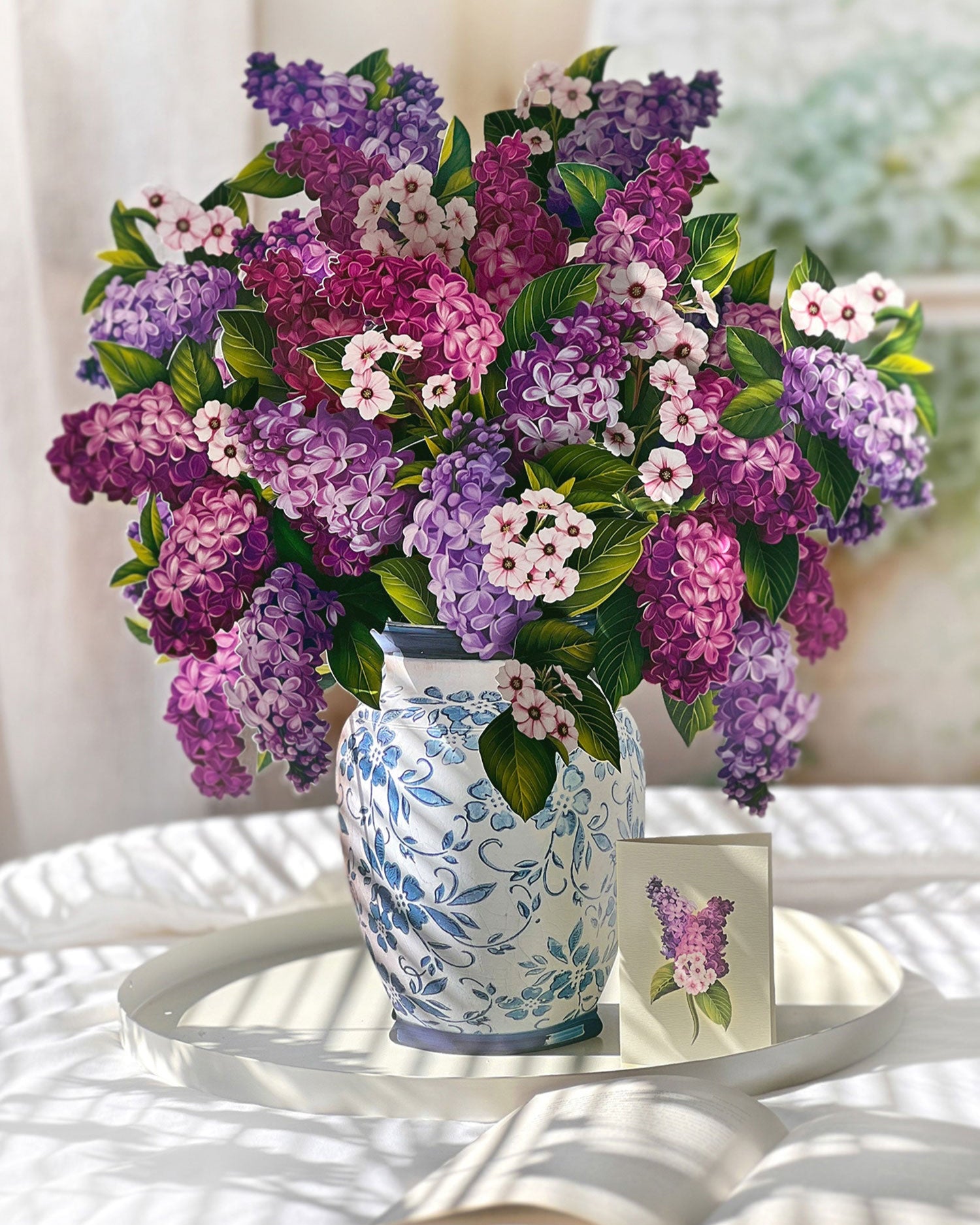 - Includes: large bouquet, matching bouquet note card, paper vase, and vibrant mailing envelope