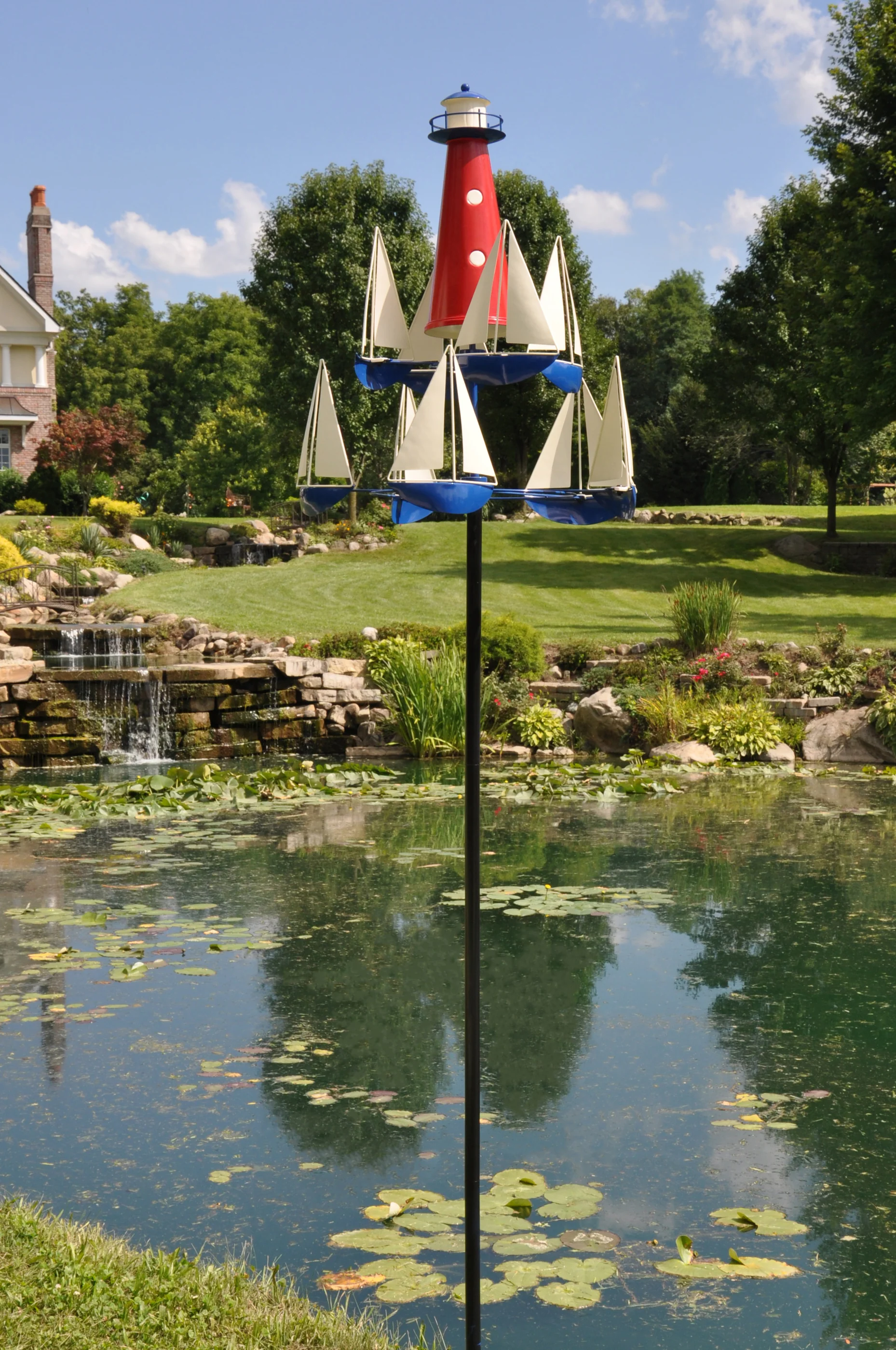 As the wind spins this metal art, you can show off your creativity and create a beautiful display in your yard.